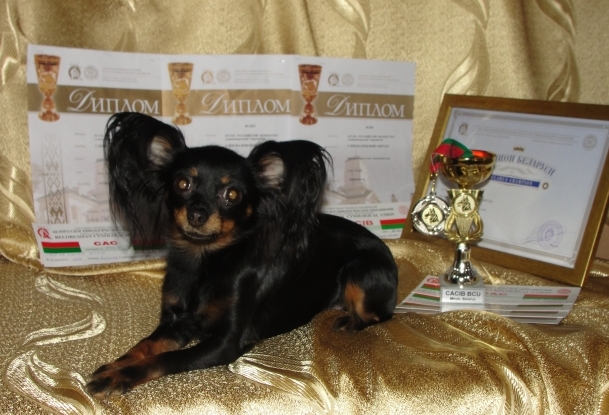 Награды и титулы: ЮНЫЙ ЧЕМПИОН РОССИИ, ; ЮНЫЙ ЧЕМПИОН КЛУБА, ; ЧЕМПИОН РОССИИ, ; ЧЕМПИОН УКРАИНЫ, ; ЧЕМПИОН РКФ, ; ЧЕМПИОН КЛУБА, ; ГРАНДЧЕМПИОН РОССИИ, ; ЧЕМПИОН БЕЛАРУСИ.;