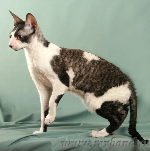 Кошки породы Корниш Рекс отличаются от своих собратьев курчавой короткой шерстью, изящным телом, небольшой вытянутой головой, длинным гибким хвостом. Экзотический облик этих созданий дополняют высокопоставленные большие уши и волшебные, миндалевидные глаза.